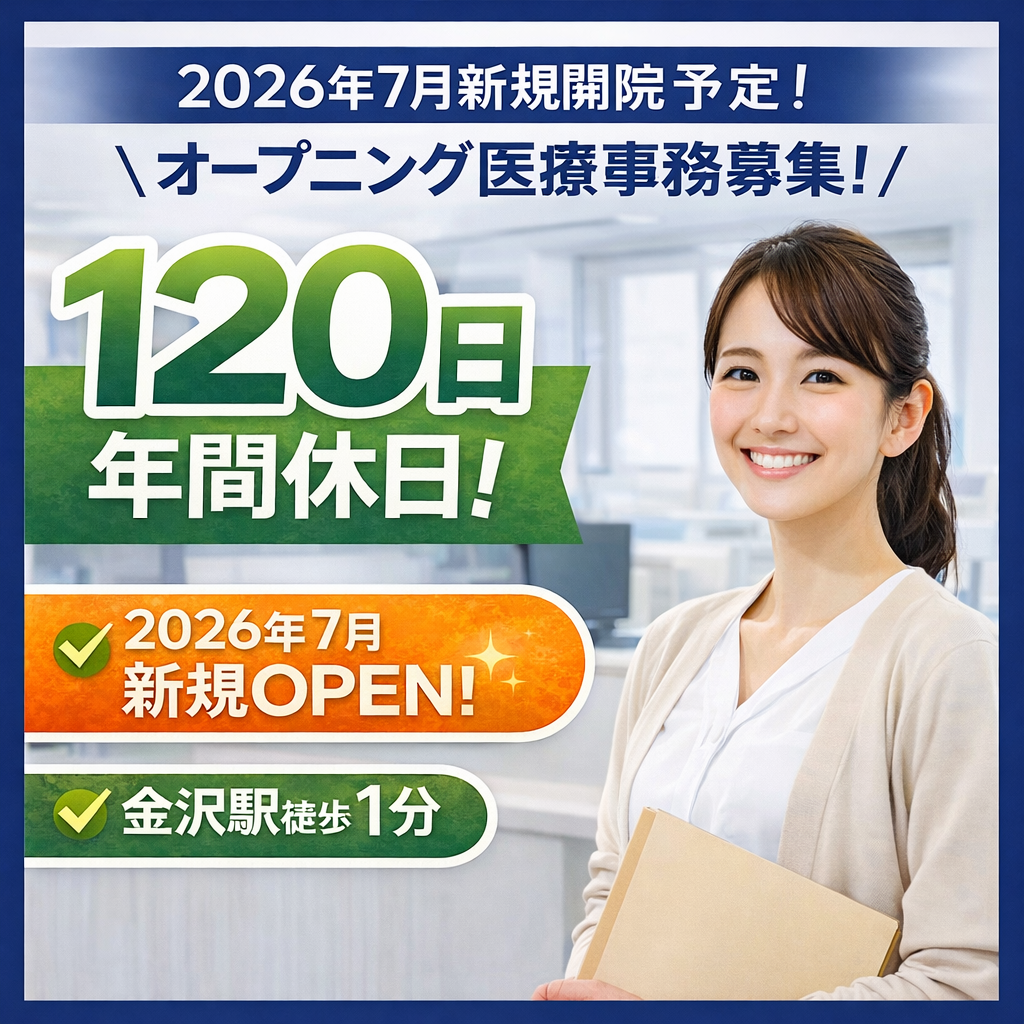 【金沢市】駅徒歩1分!新規開院☆整形外科の受付事務