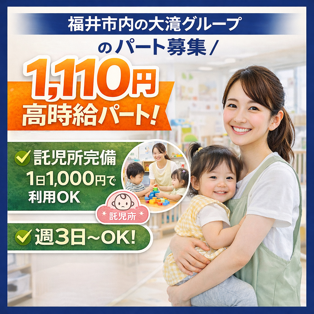 給与時給 1,053円~1,109円交通えちぜん鉄道「西福井駅」より徒歩10分 京福バス「湊新町」バス停より徒歩3分勤務時間上記時間帯いずれかで応相談 (1) 08:30〜17:30(休憩60分) (2) 08:30〜12:30(休憩なし) (3) 13:30〜17:30(休憩なし) ※時間外労働なし入所利用者の介助(食事、排泄、入浴、更衣、移乗・移動動作)