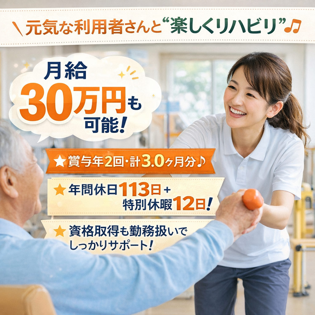 ・部署異動も可能で、希望に応じてキャリアチェンジOK!\ リハビリ型デイで「元気を届ける」お仕事! /